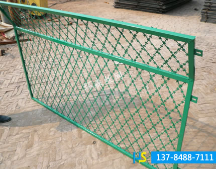 【公司電話】13784887111 【公司地址】河北省衡水市安平縣徐疃工業(yè)園區(qū) 【產(chǎn)品摘要】刺絲刺繩護欄網(wǎng)網(wǎng)也稱為刀片刺絲護欄網(wǎng)、刀片刺網(wǎng)護欄網(wǎng),是一種新型護欄網(wǎng)產(chǎn)品。是在兩條刀片刺網(wǎng)之間以不銹鋼片和鍍鋅鋼片強力夾扣,展開后即呈交叉狀。它具有嚇阻效果好、美觀、施工便利,經(jīng)濟實用等優(yōu)異特點。主要用于園林公寓,機關(guān)單位,監(jiān)獄,哨所,邊防等的圈禁防護。
